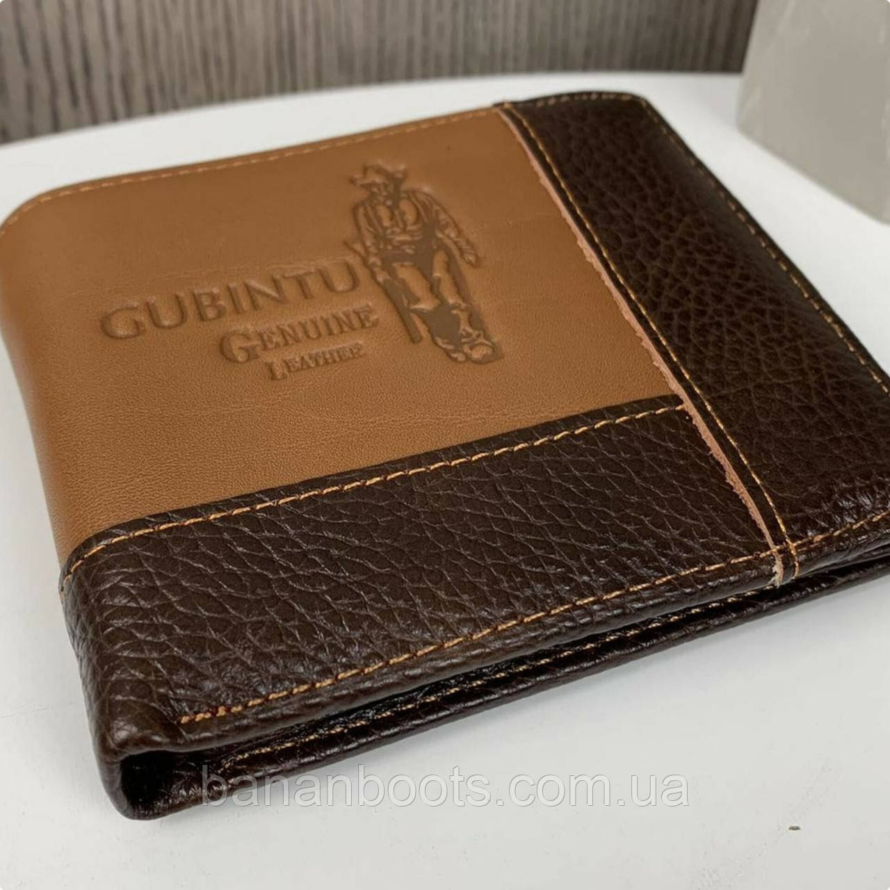 Шкіряний коричневий чоловічий гаманець портмоне з ковбоєм